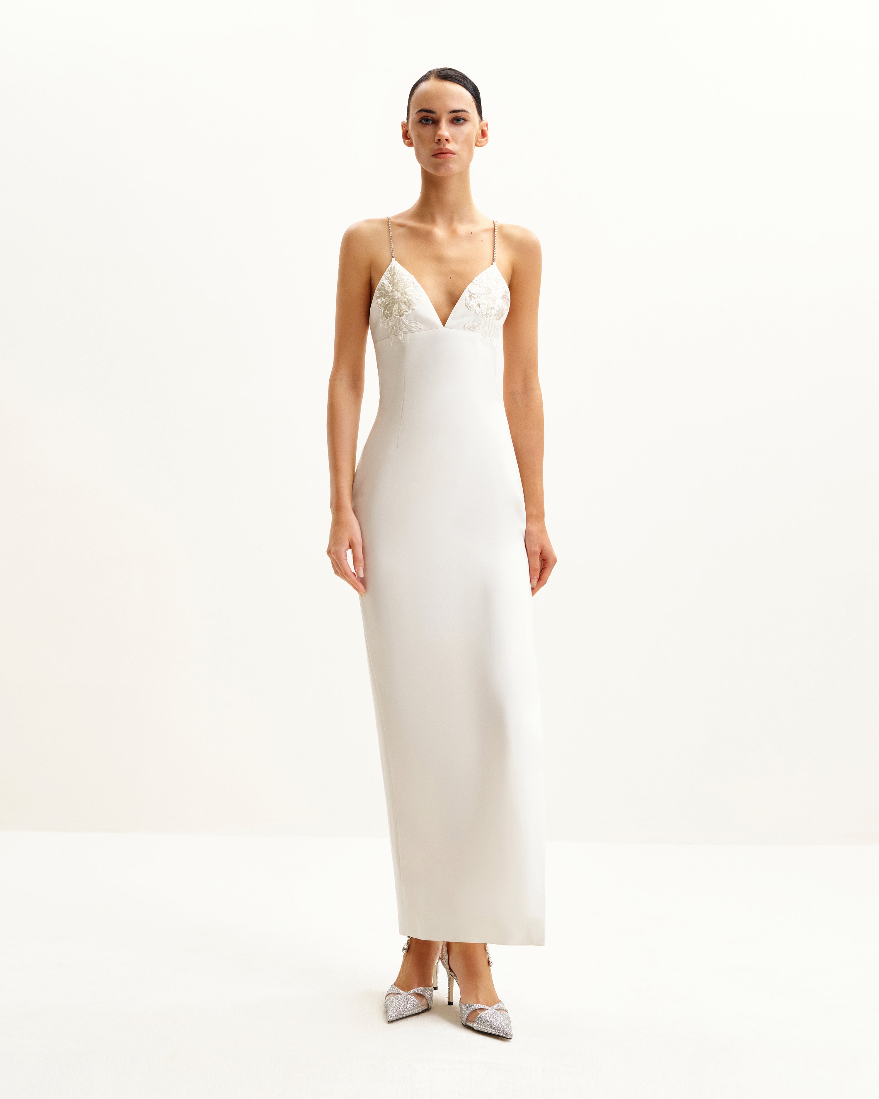 Ayliua Sweetheart-Neckline Rhinestones Embellished White Long Dress - White
