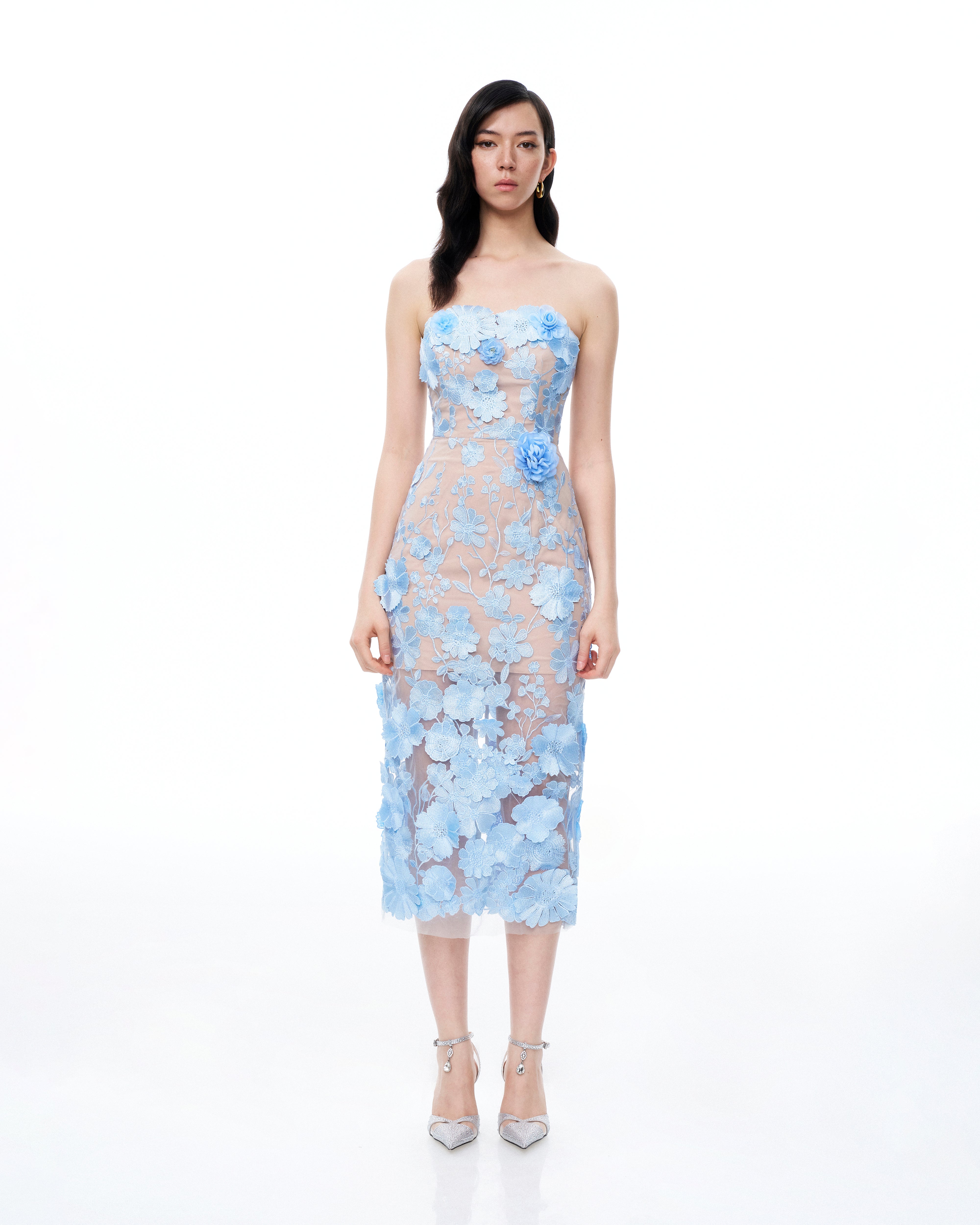 Evander 3D Floral Embroidered Maxi Dress - Blue