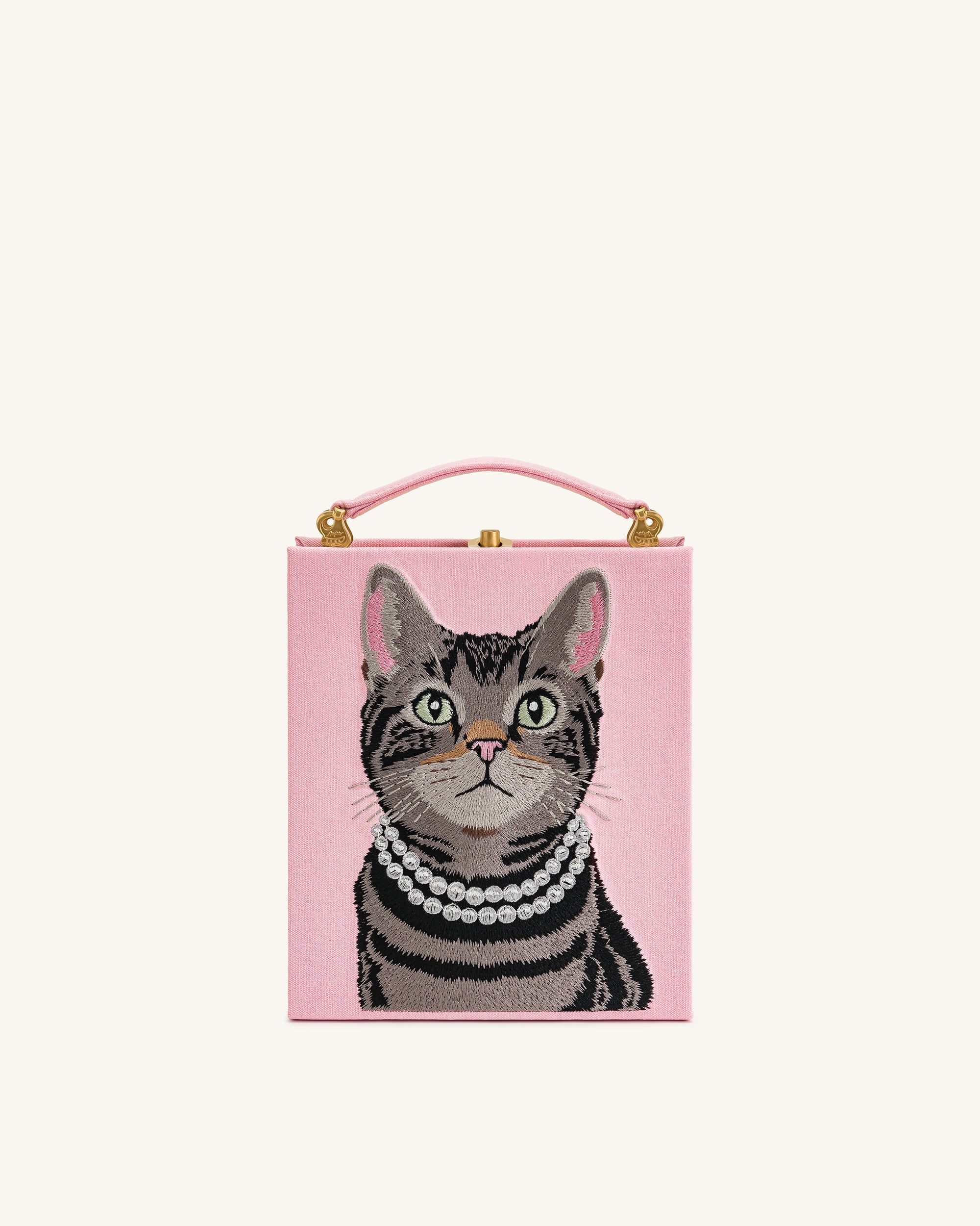 Taya Tabby Cat Pattern Book Shape Clutch Bag - Pink